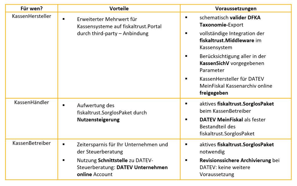 - Bereitstellung Schnittstelle vom fiskaltrust.Portal zur DATEV MeinFiskal Plattform